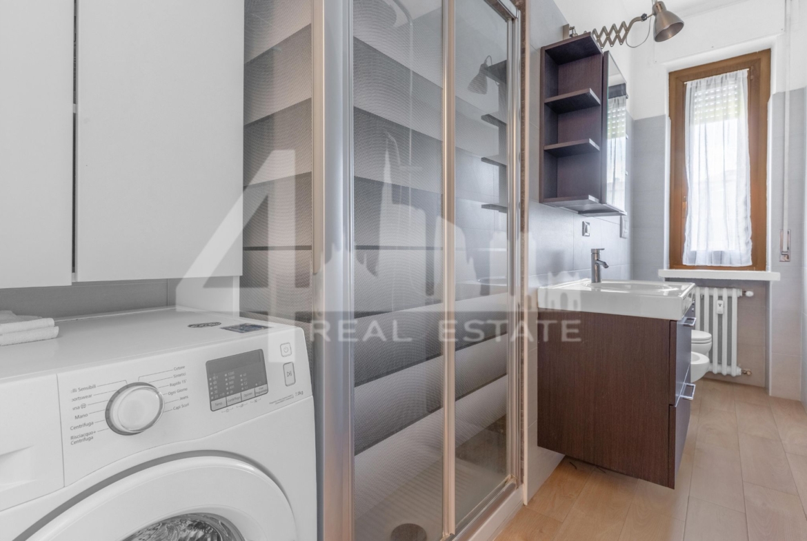 La zona notte è composta da un’ampia camera matrimoniale e da un pratico ripostiglio. Il bagno, finestrato, è dotato di box doccia e zona lavanderia.