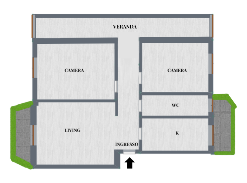 L’immobile, da personalizzare, ha una superficie di 100 mq ed è composto da: ingresso su soggiorno con accesso al primo balcone, cucina abitabile con uscita diretta sul secondo balcone, ampia camera da letto matrimoniale, seconda camera e bagno finestrato con vasca. Proseguendo lungo il corridoio si accede a un’ampia veranda di circa 15 mq, utilizzabile come stanza hobby, studio, zona relax o locale multiuso.
