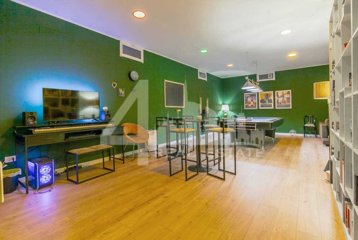 Una scala interna conduce ad ulteriori 95 mq, dove attualmente vengono utilizzati come zona hobby, uno spazio versatile che può essere facilmente adattato a studio, area relax o ambiente creativo a seconda delle esigenze.