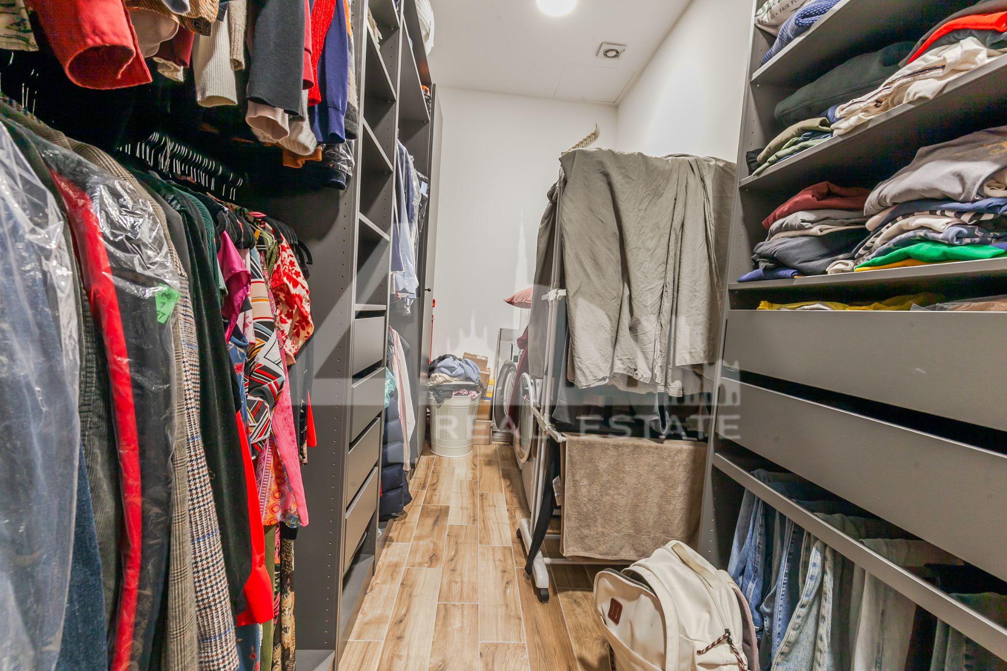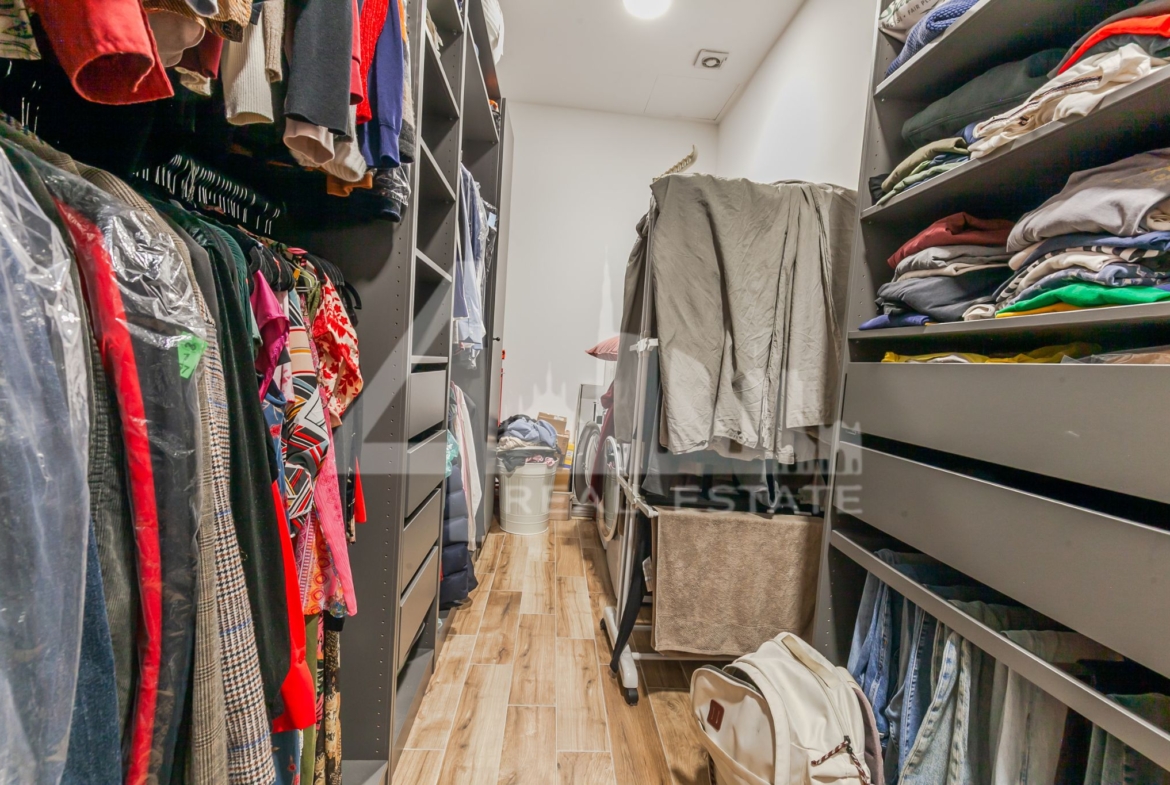 Completa la soluzione un’ ampia cabina armadio ed un secondo bagno di servizio con box doccia.