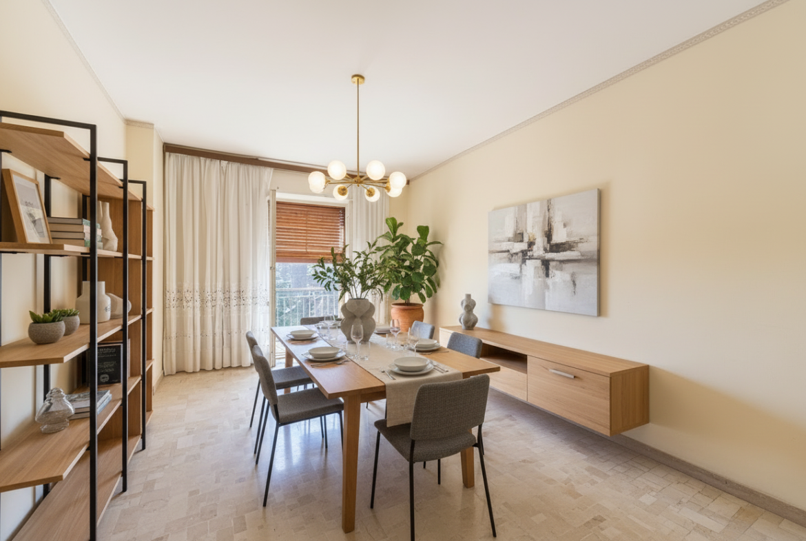 L’immobile si distingue per spazi ampi e razionali, con una distribuzione interna ideale per una personalizzazione completa. Attualmente composto da soggiorno, cucina abitabile, studio, tre camere da letto e doppi servizi, offre un enorme potenziale progettuale per chi desidera una casa su misura.