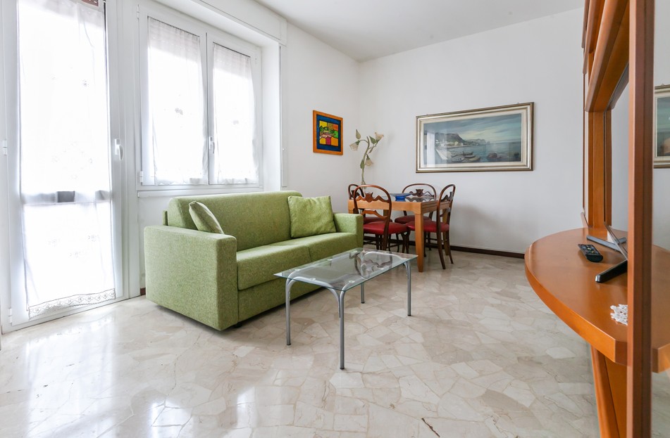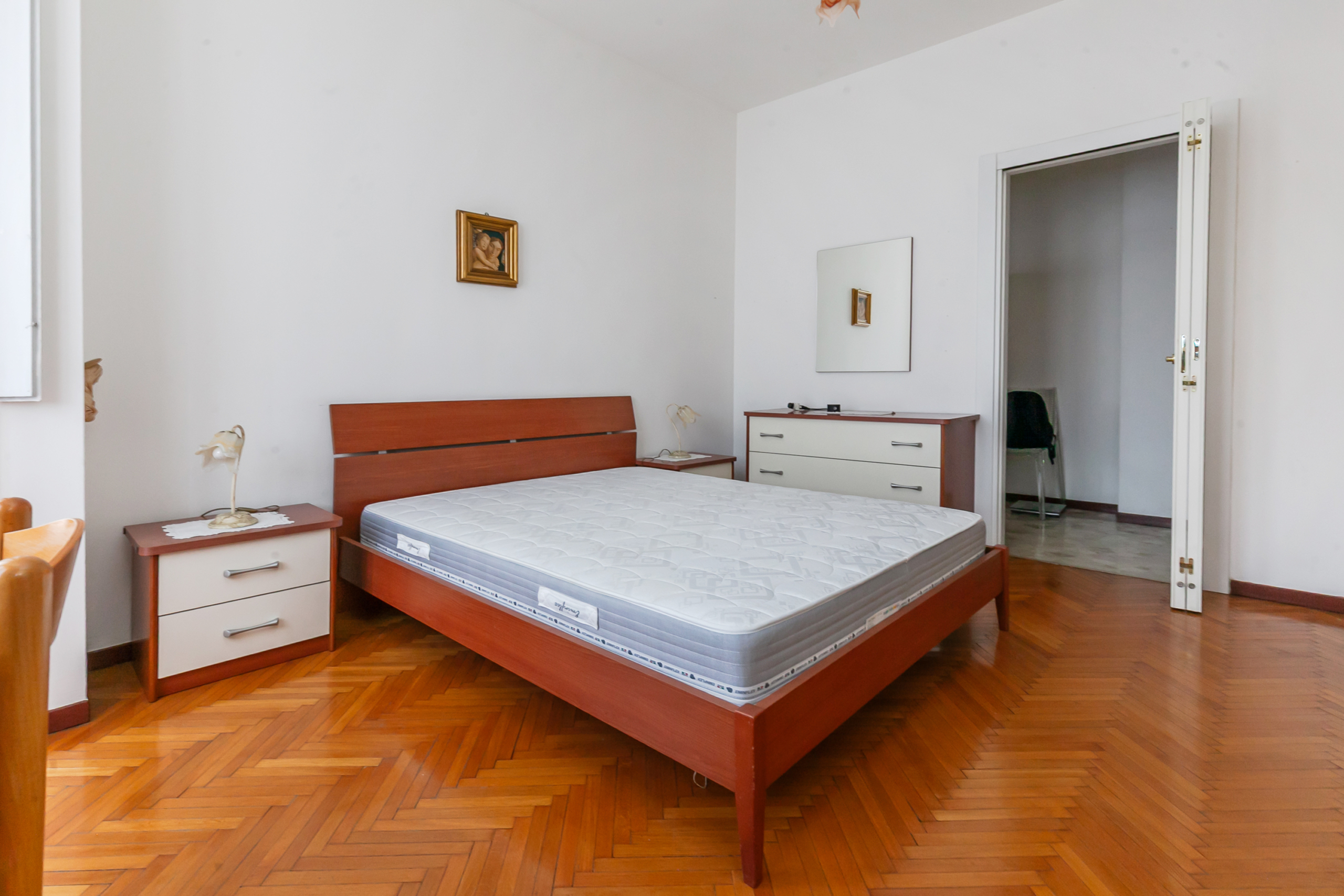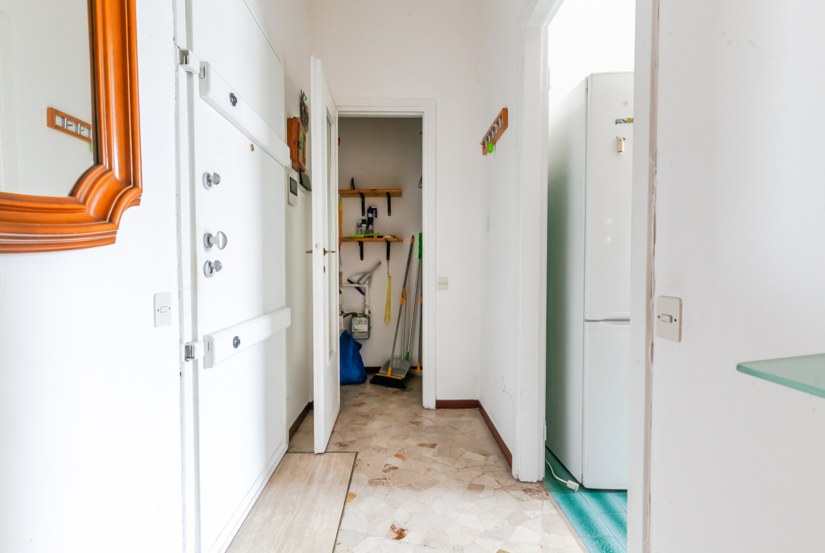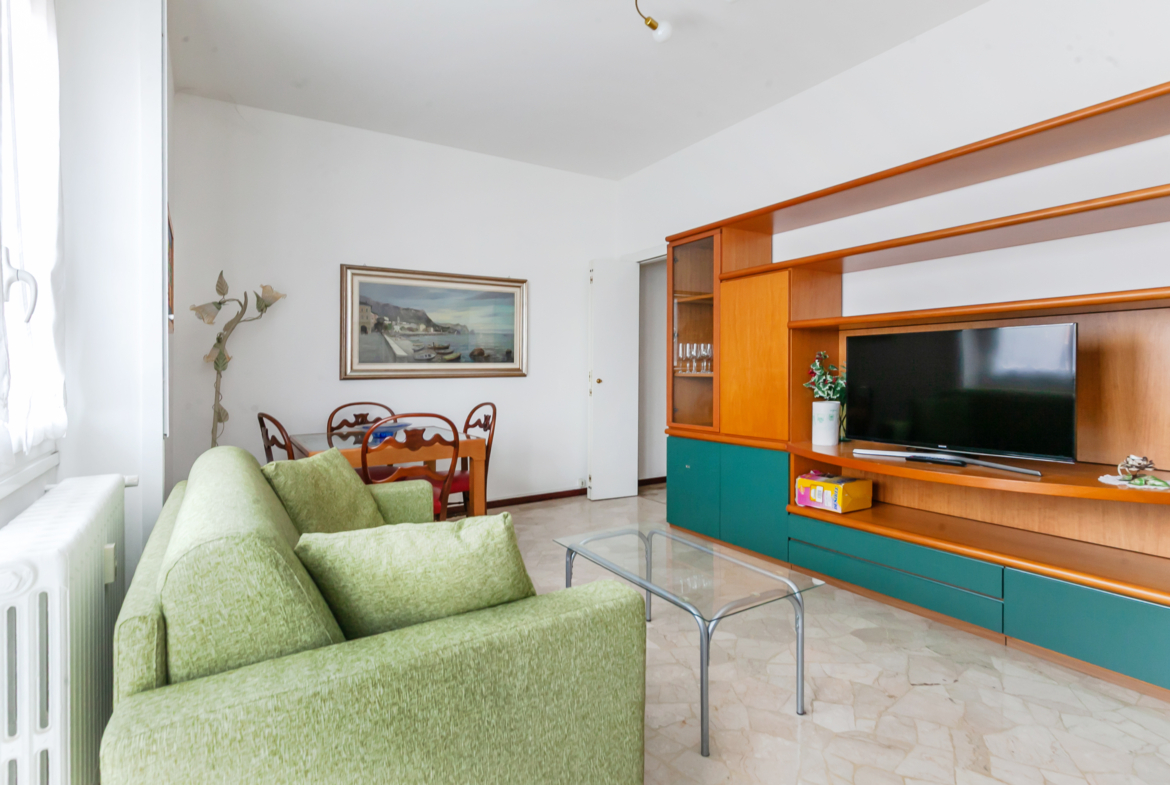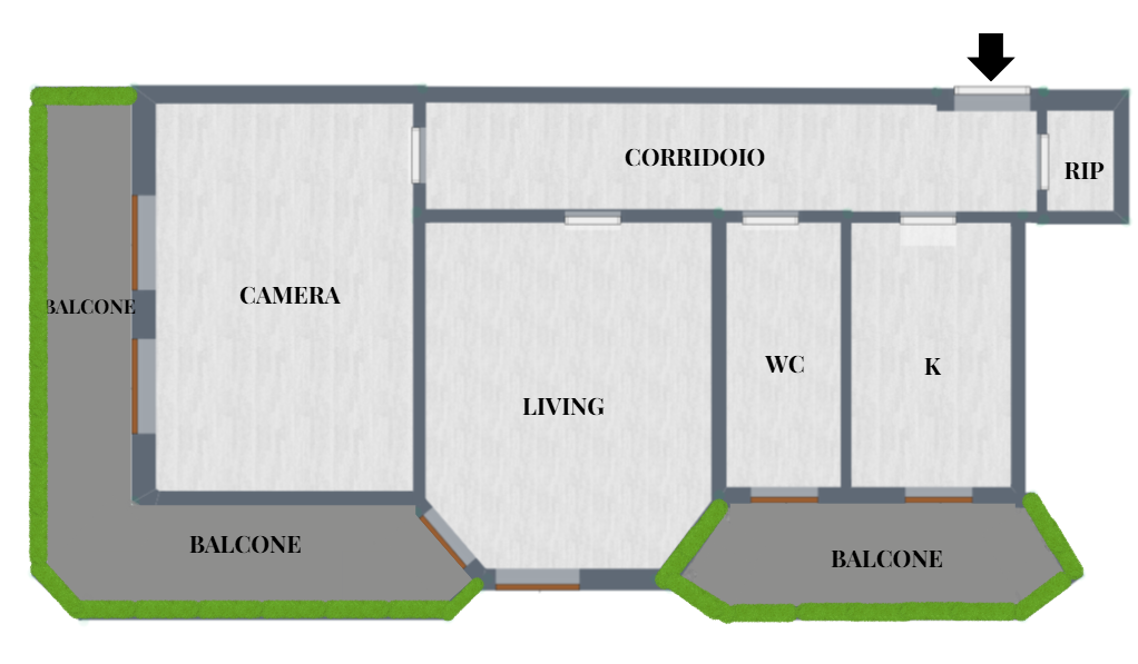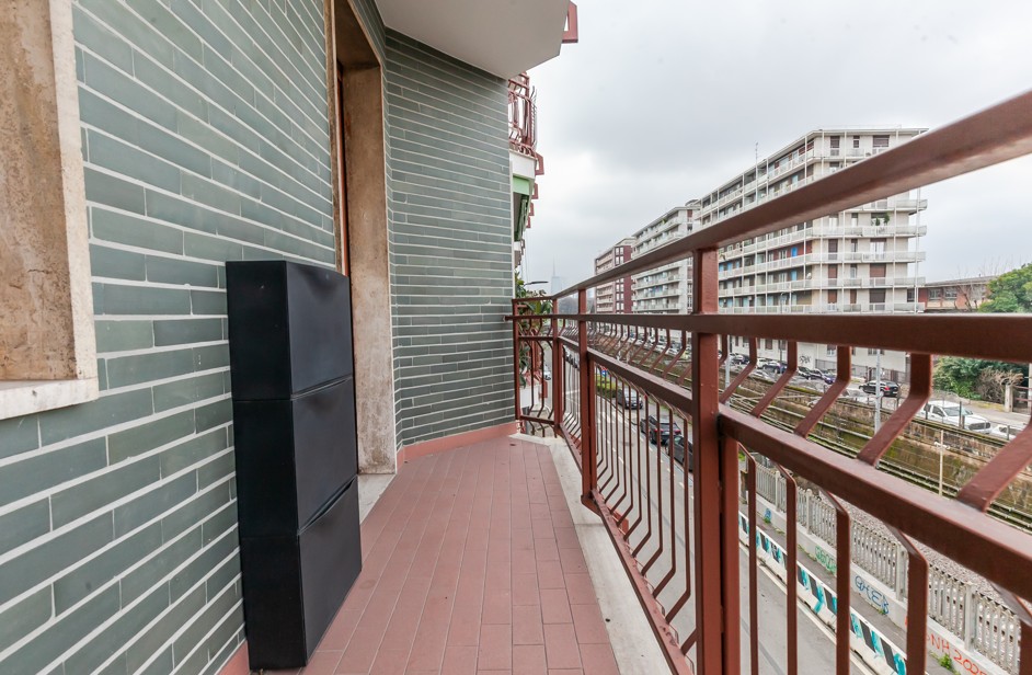 L’immobile è composto da disimpegno, luminoso soggiorno con accesso ad un ampio balcone, cucina abitabile con uscita al secondo balcone,ampia camera da letto matrimoniale e bagno finestrato con box doccia.
