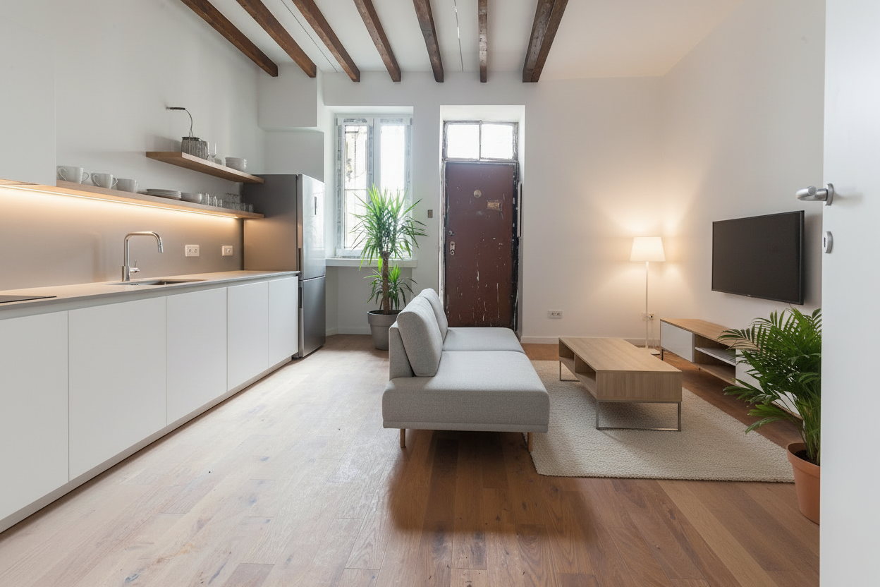 Le immagini della zona living sono dei rendering, poiché l’appartamento è attualmente nelle fasi finali di ristrutturazione.