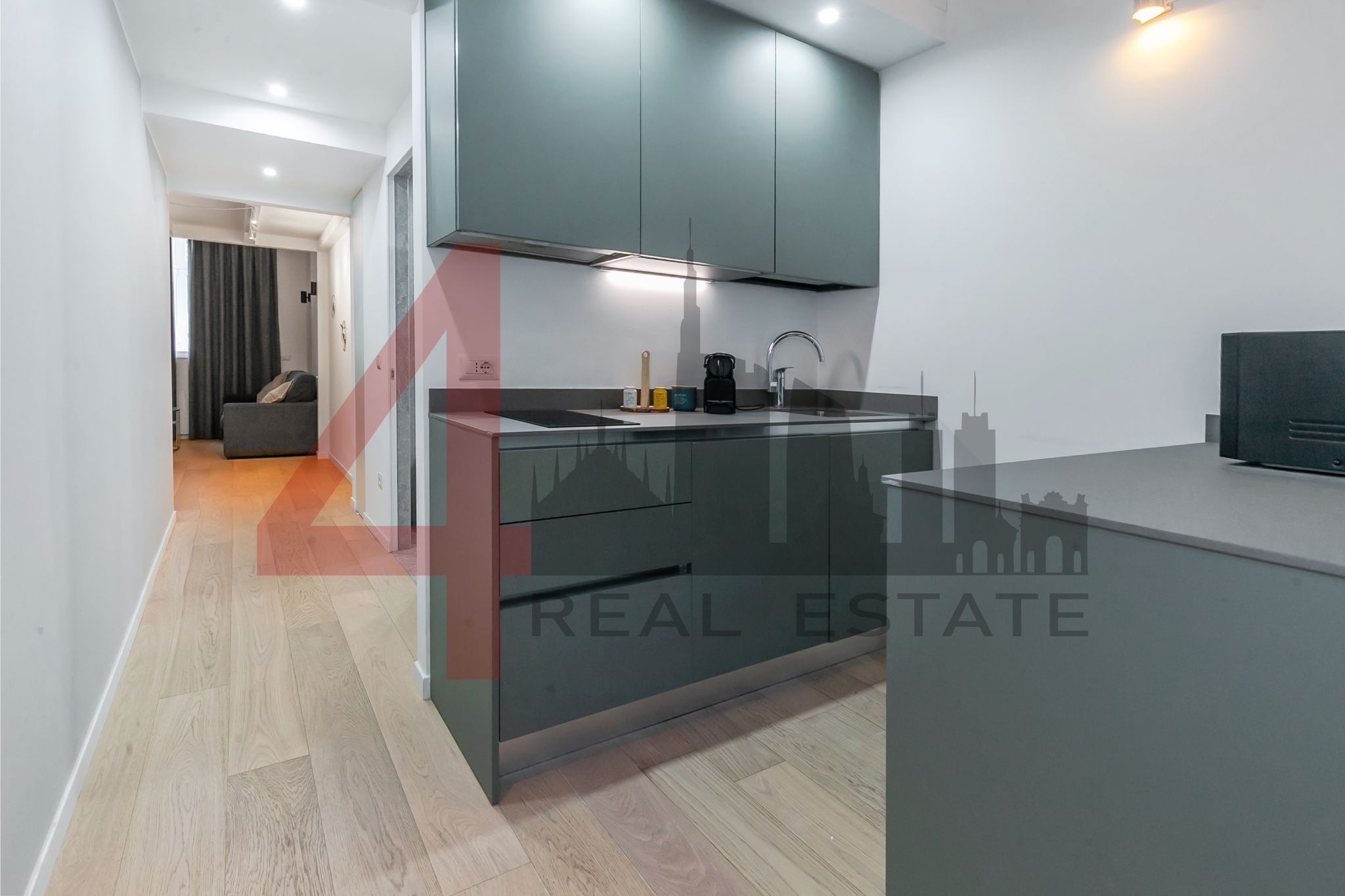 La zona living si sviluppa con eleganza ed è valorizzata da arredi realizzati interamente su misura, studiati per integrarsi perfettamente con gli ambienti e offrire funzionalità senza rinunciare allo stile. La cucina si inserisce in modo armonioso, con finiture di alta gamma e dettagli ricercati.