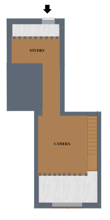 Tramite una scala , si accede alla zona superiore dove trovano spazio la camera e uno studio, ambienti riservati e ben organizzati che garantiscono comfort e versatilità, ideali sia come area notte sia come spazio lavoro.