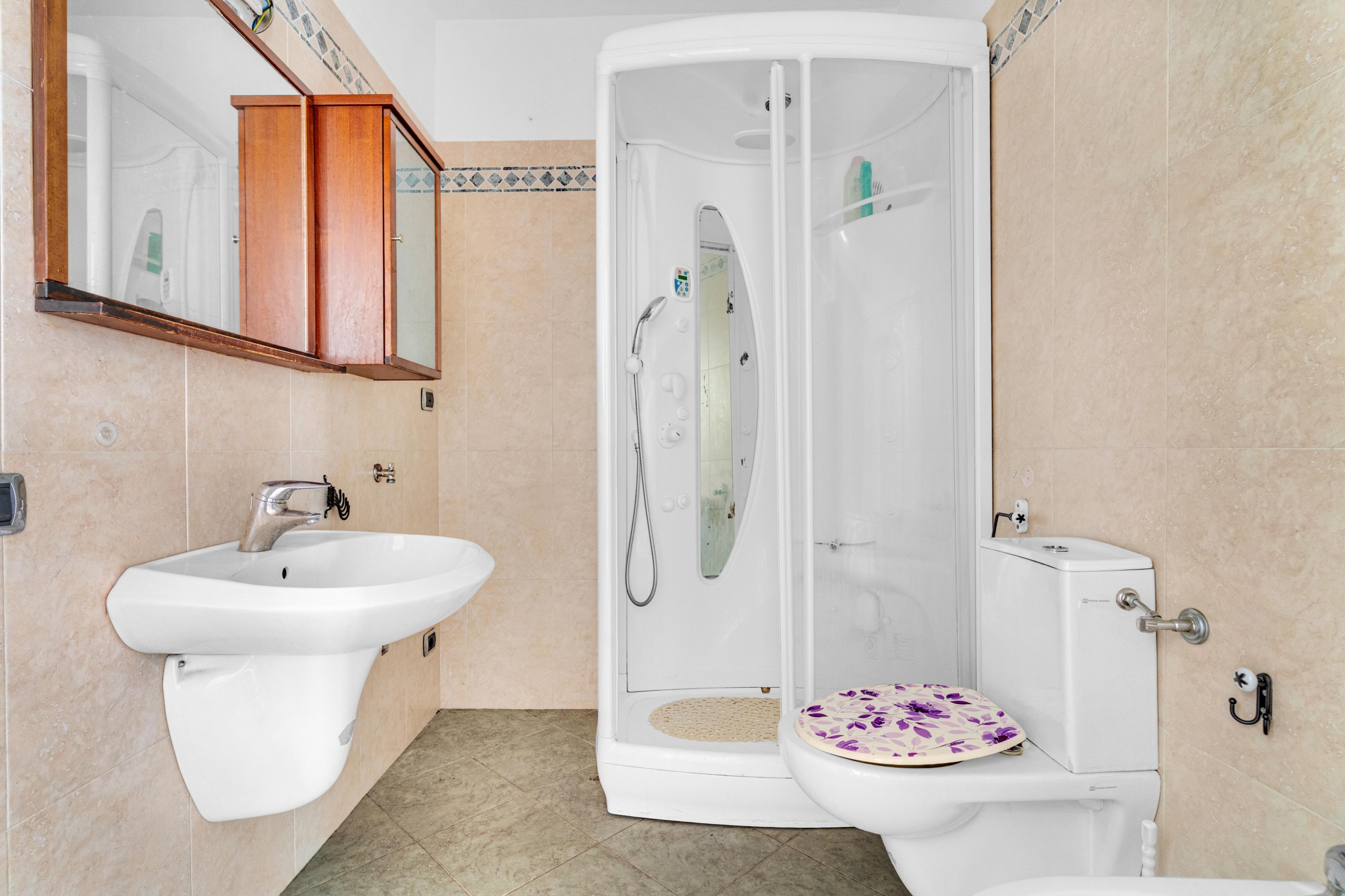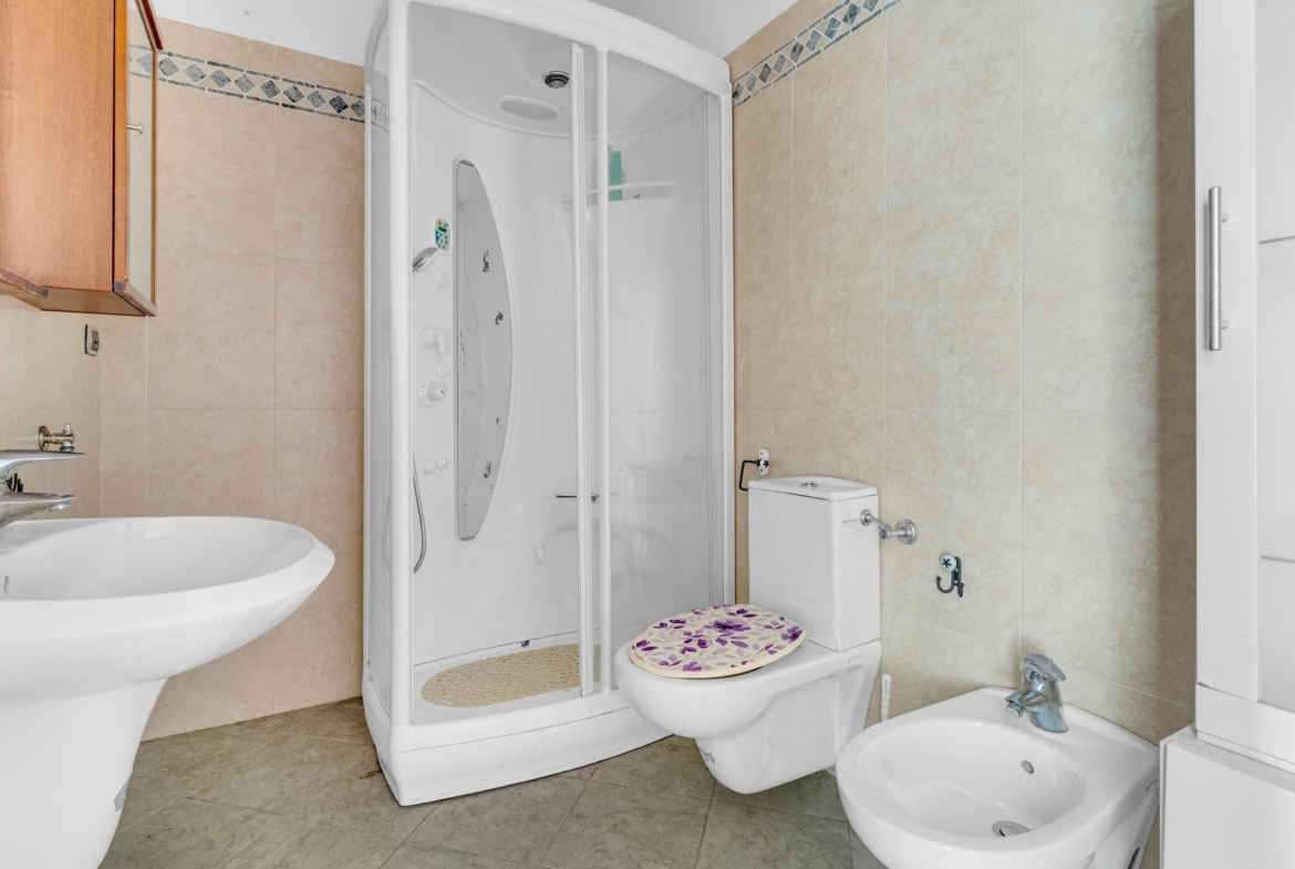 La zona notte, ben separata dagli ambienti principali presenta una camera da letto spaziosa e silenziosa ed infine il bagno con box doccia.