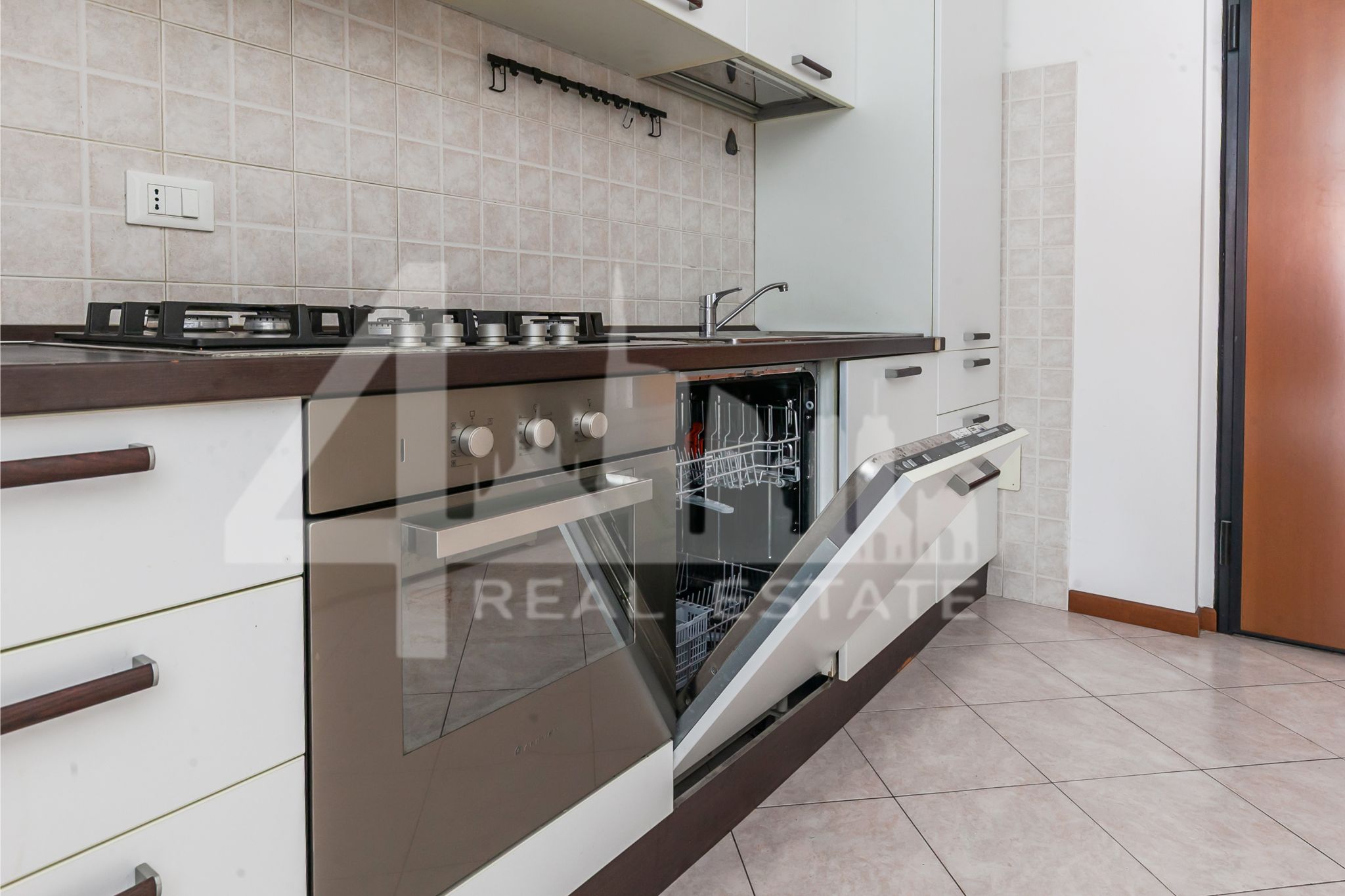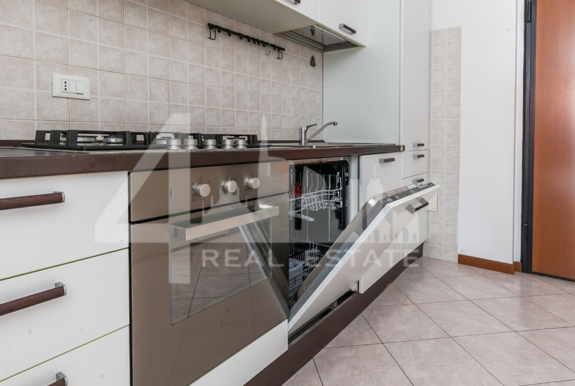 La soluzione è dotata di aria condizionata, lavastoviglie, lavatrice, infissi in doppio vetro e porta d’ingresso blindata.