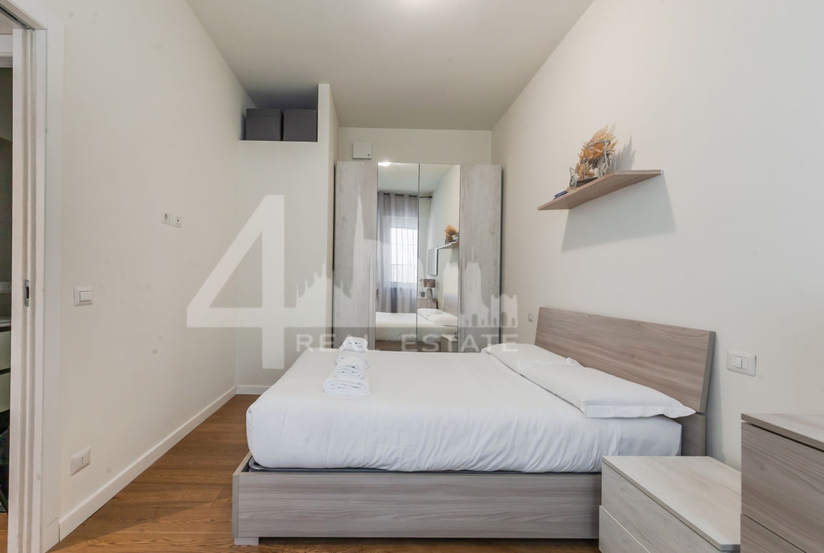 La zona notte è composta da un’ampia camera matrimoniale ed il bagno con box doccia.