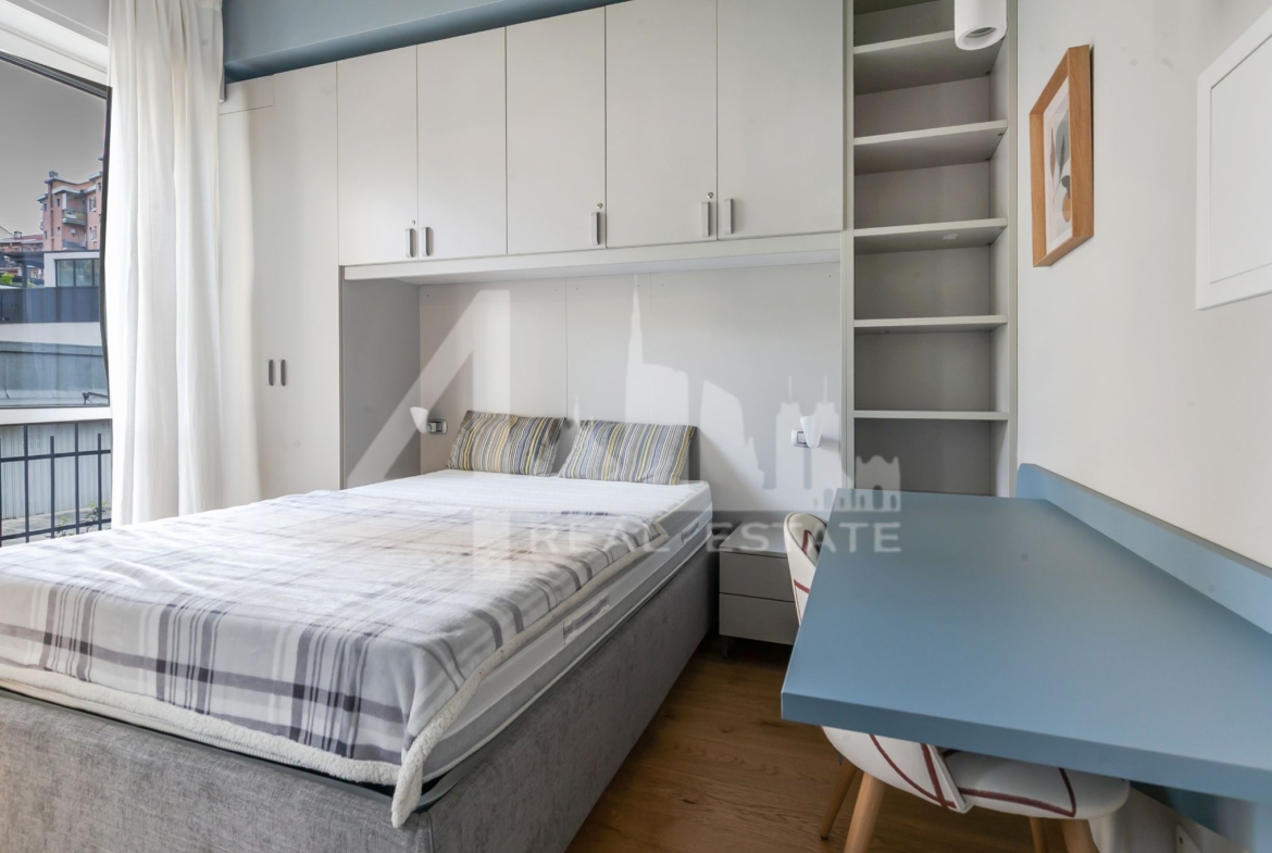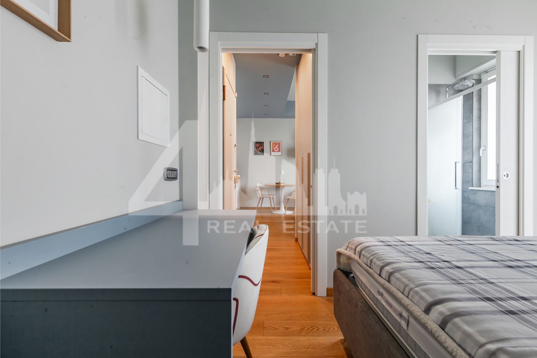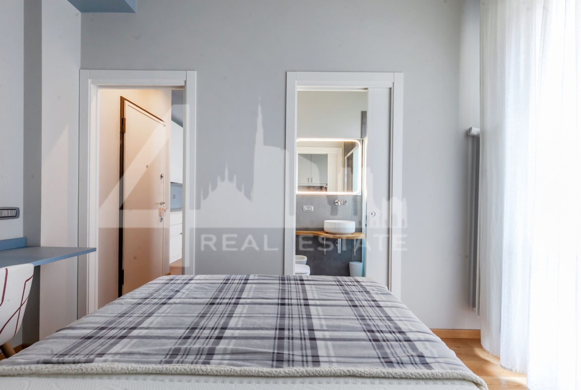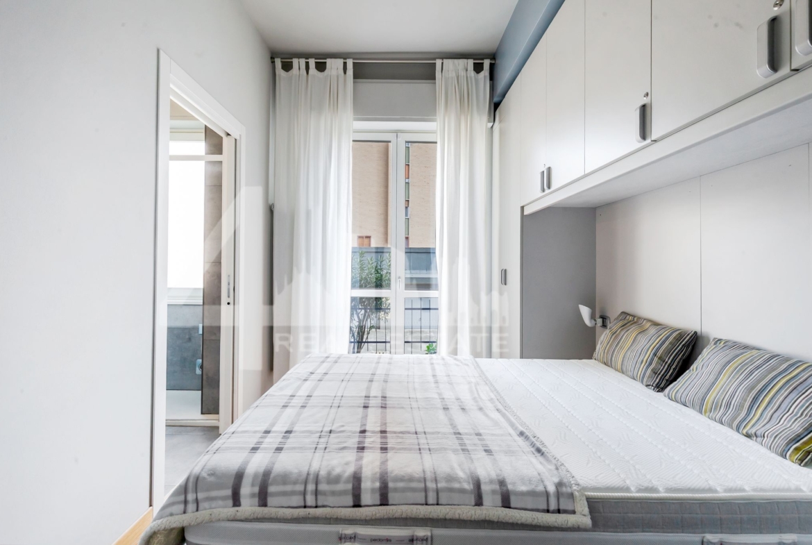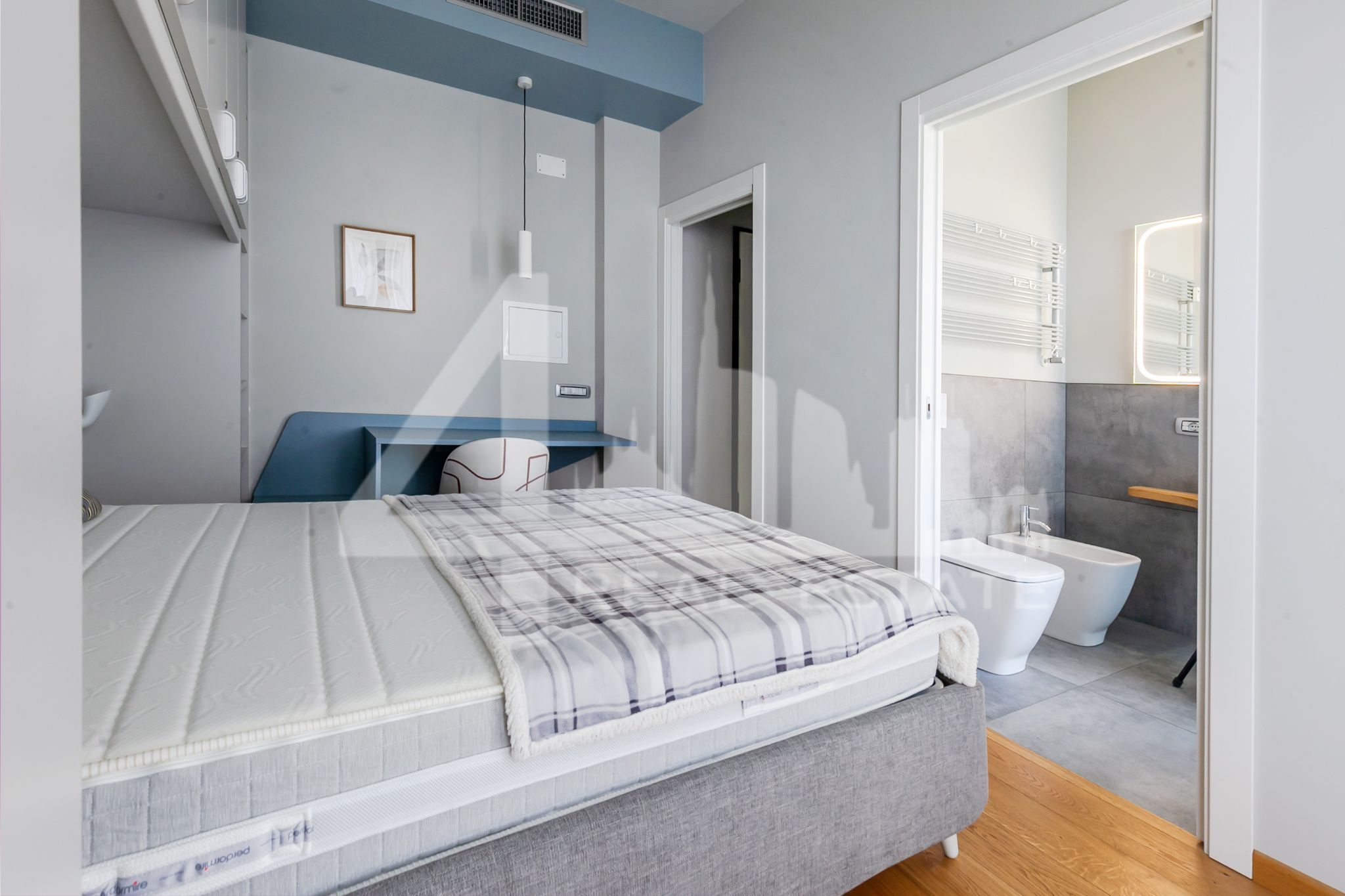 La camera da letto, con accesso al balcone affacciato sul cortile interno, è riservata e silenziosa ed è progettata per garantire il massimo comfort e la massima tranquillità.