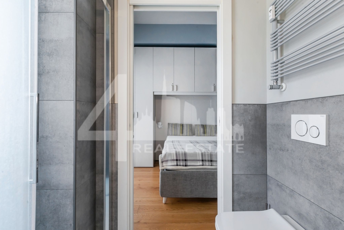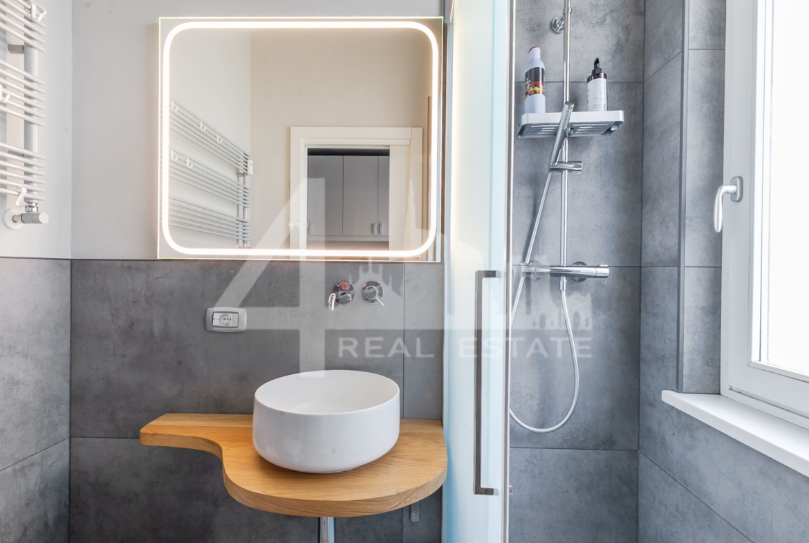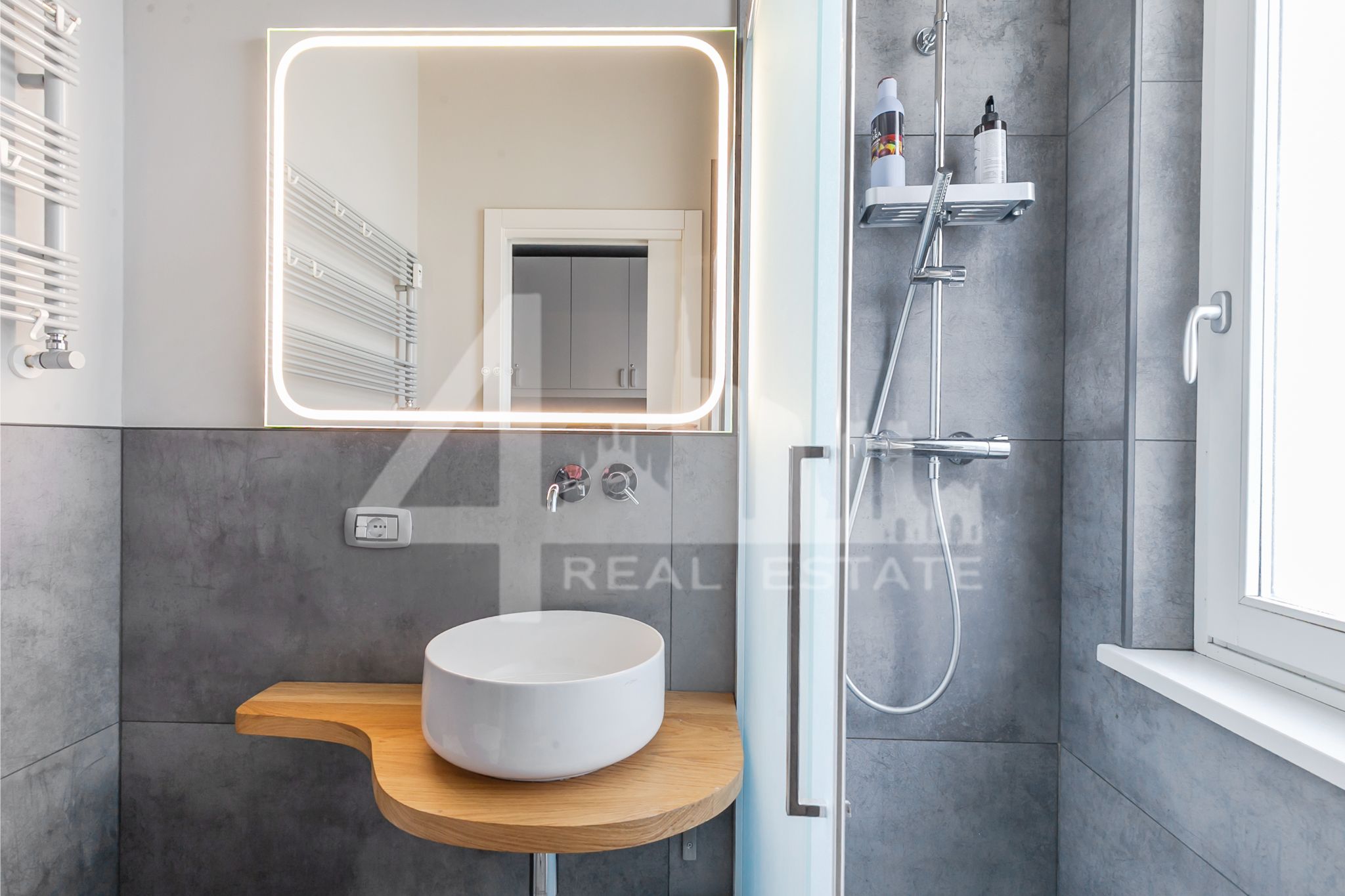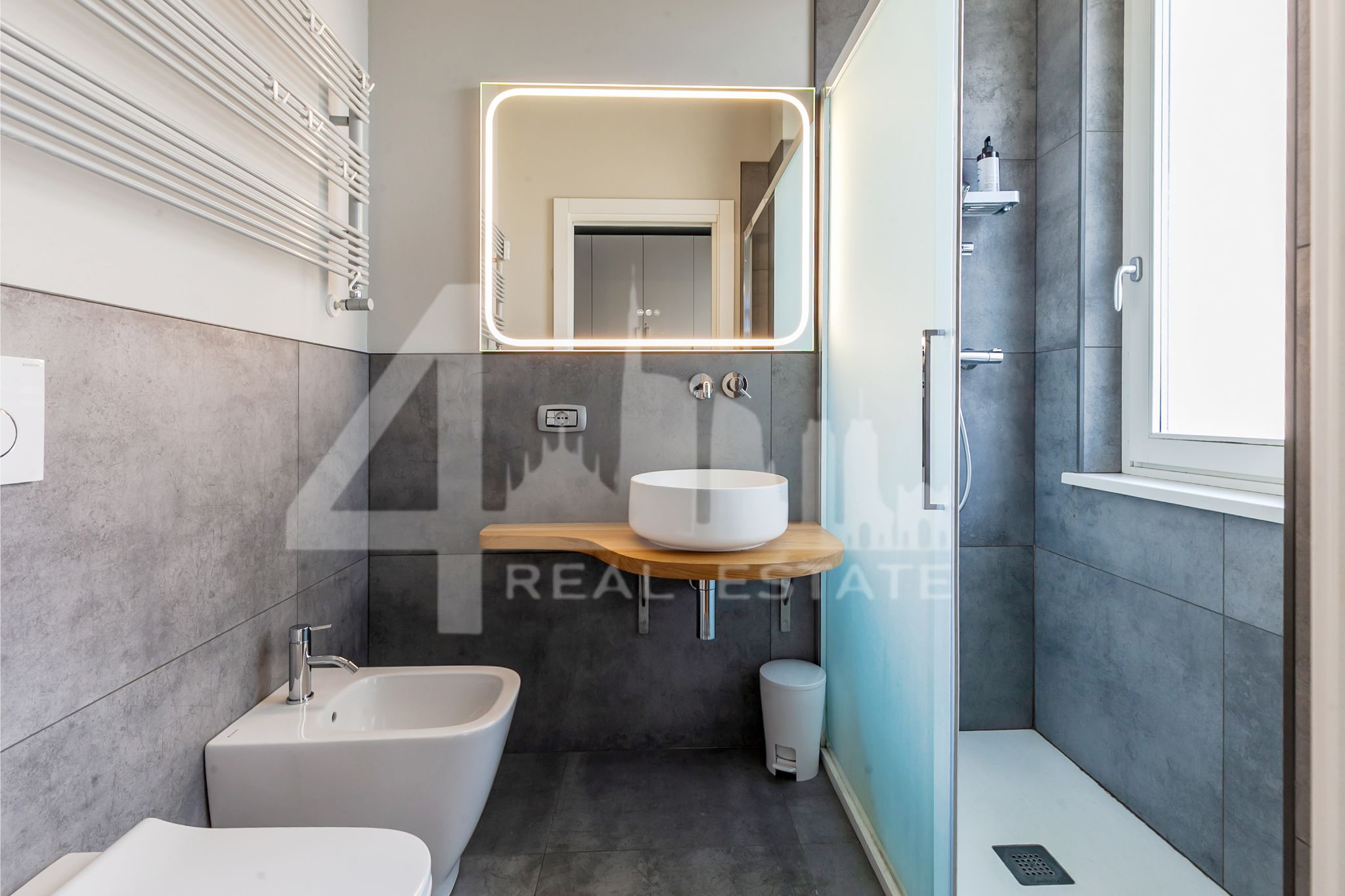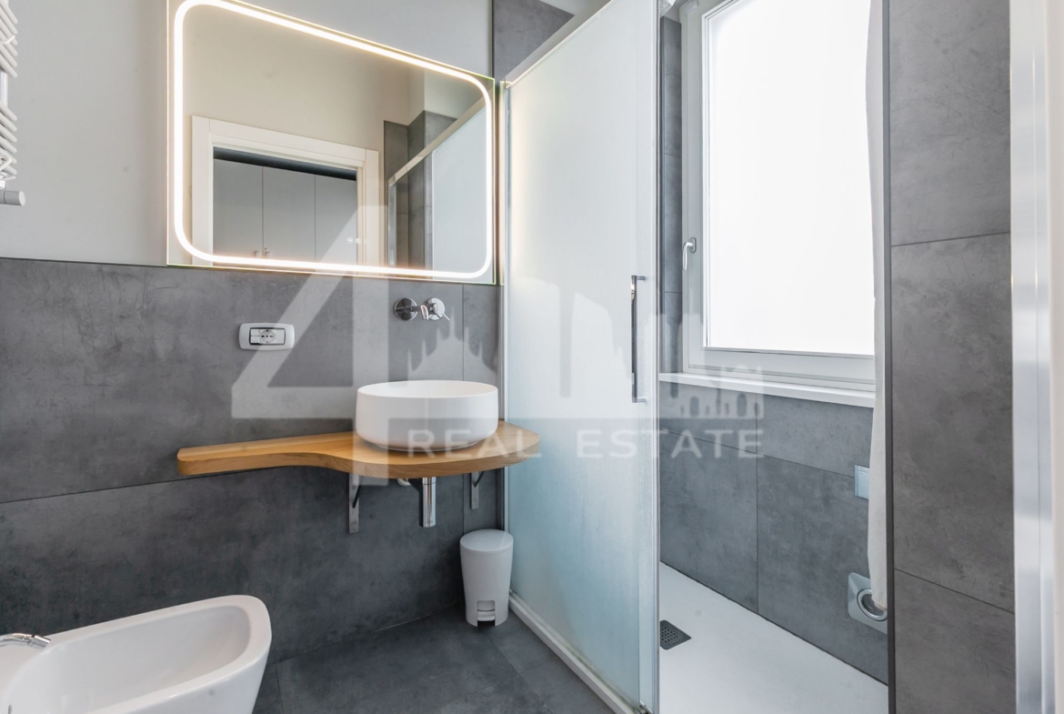 Il bagno finestrato, è ristrutturato con gusto contemporaneo, presenta linee pulite e materiali di qualità.