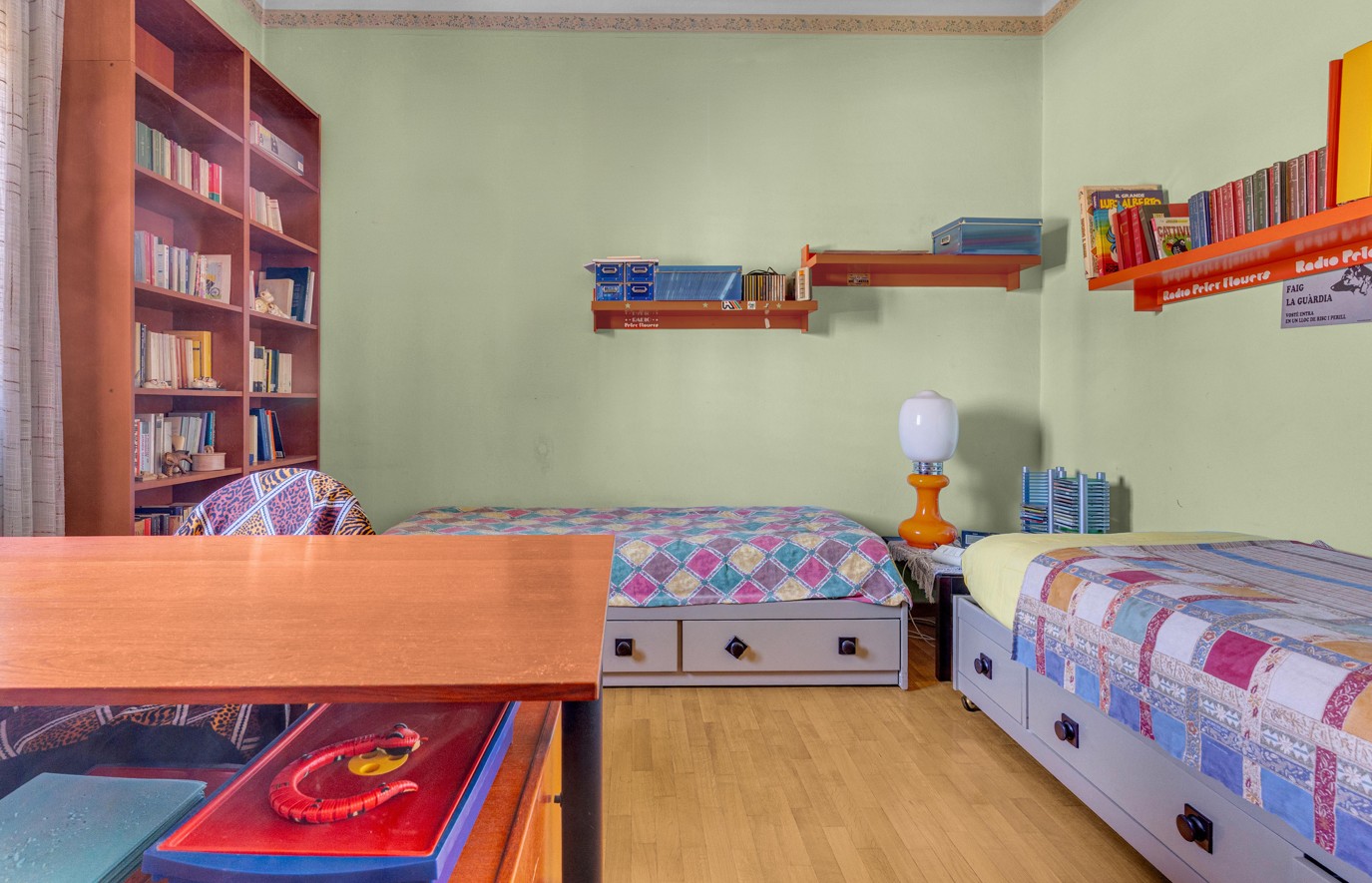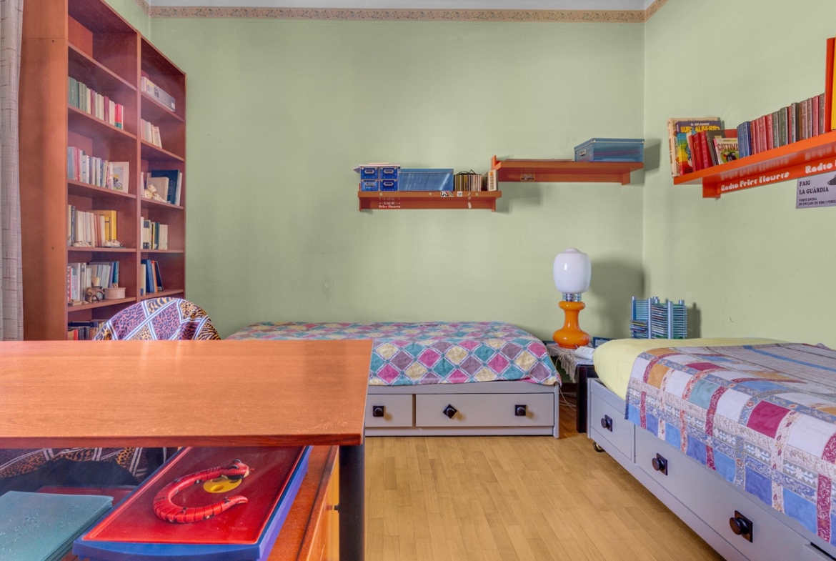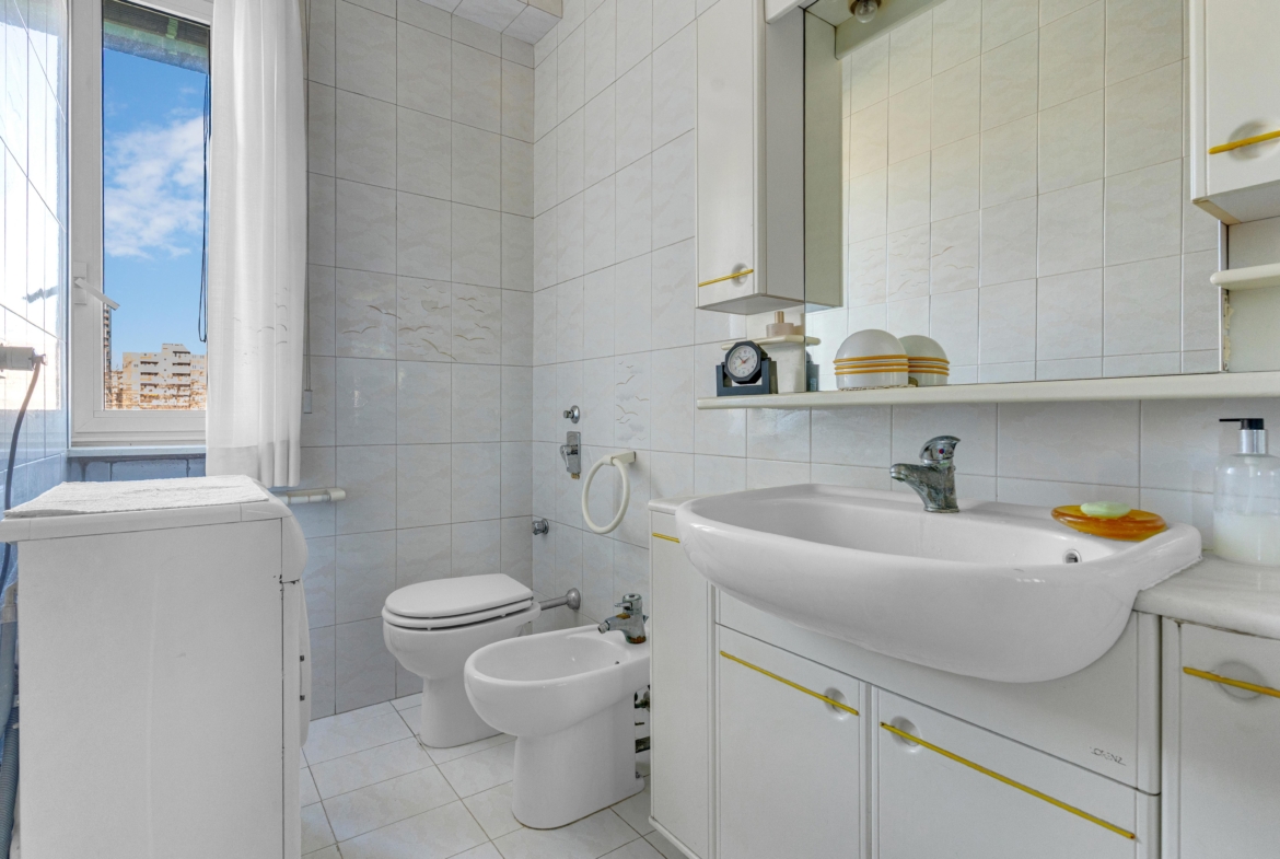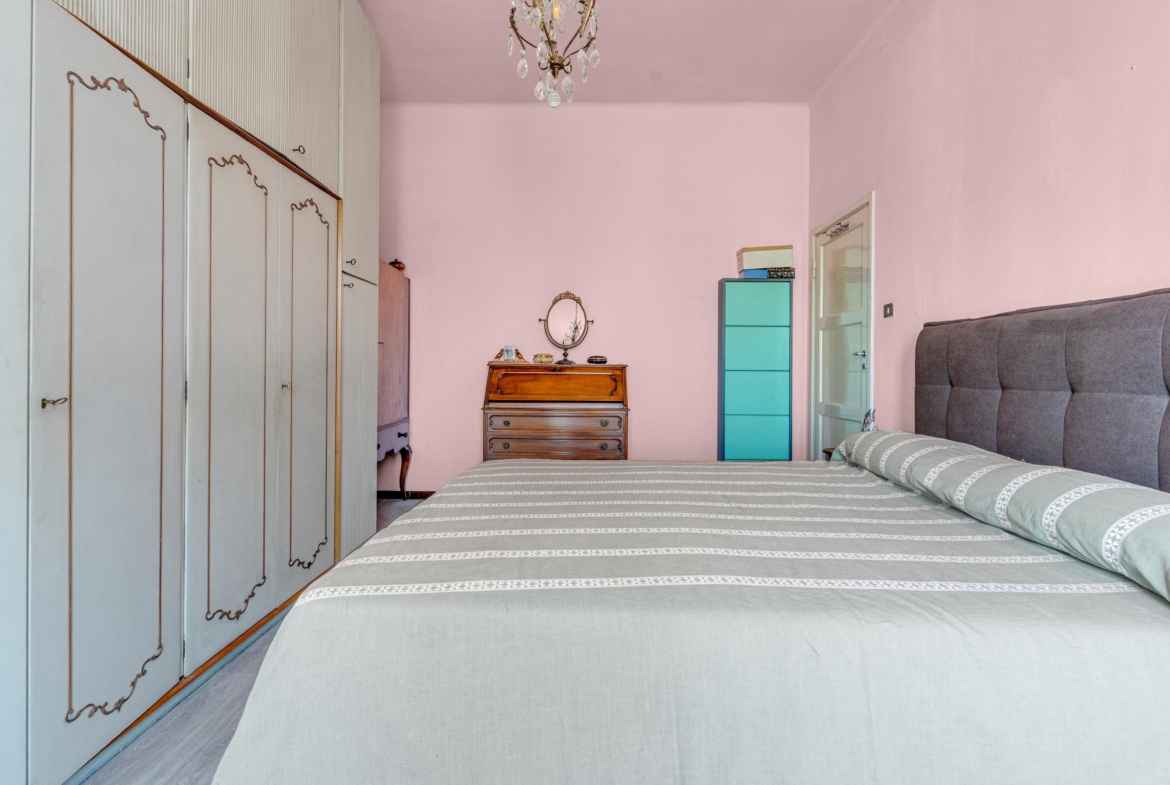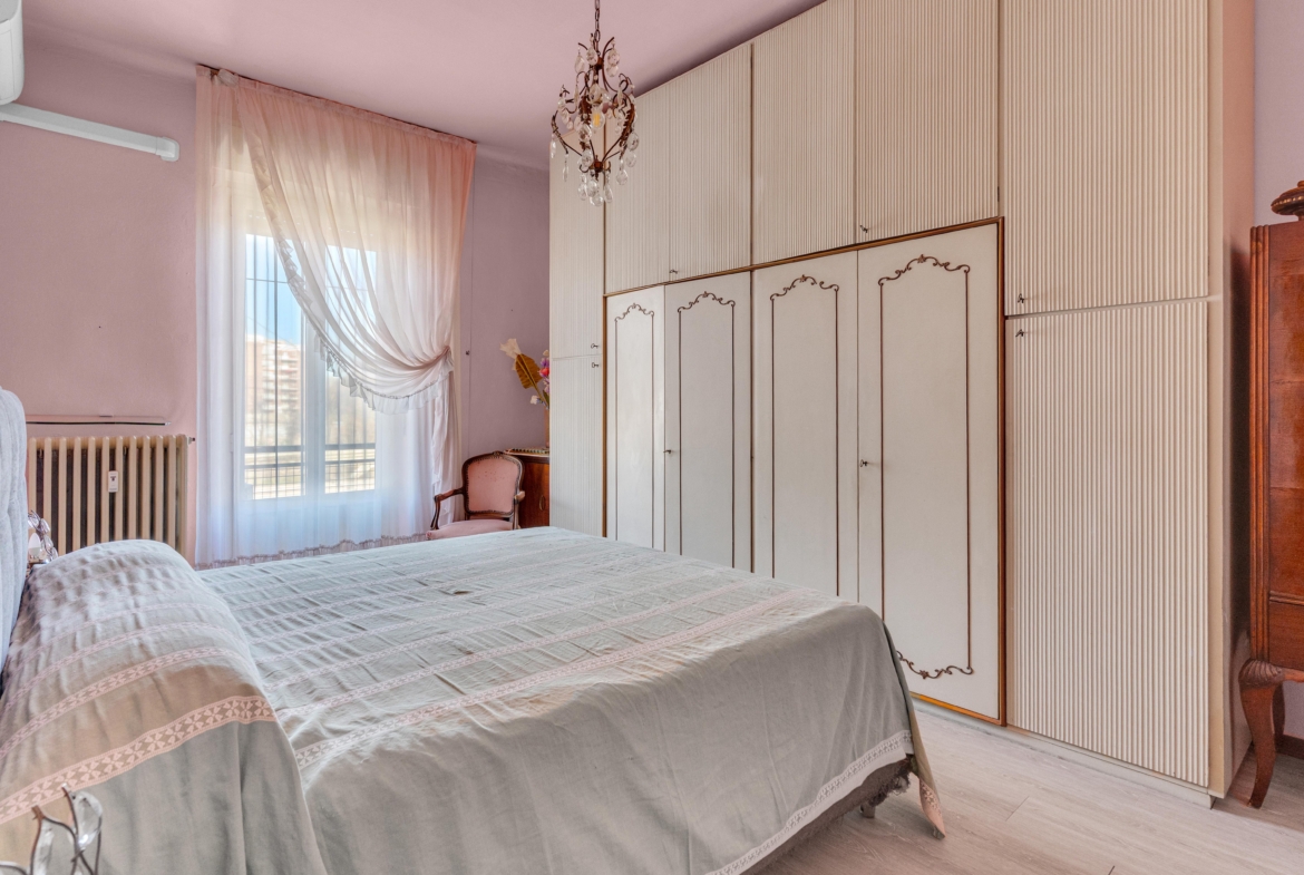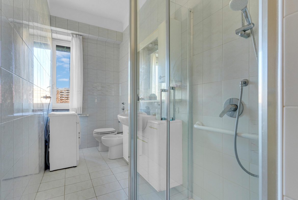 La zona notte ospita un’ampia camera da letto con uscita al secondo balcone, altra camera ed infine il bagno finestrato con box doccia.