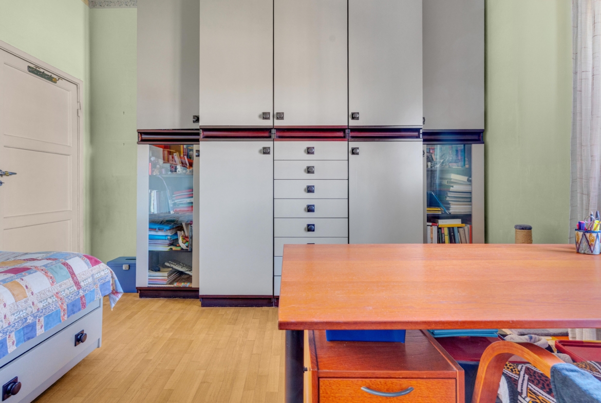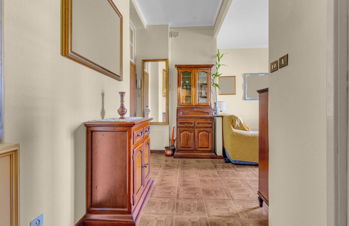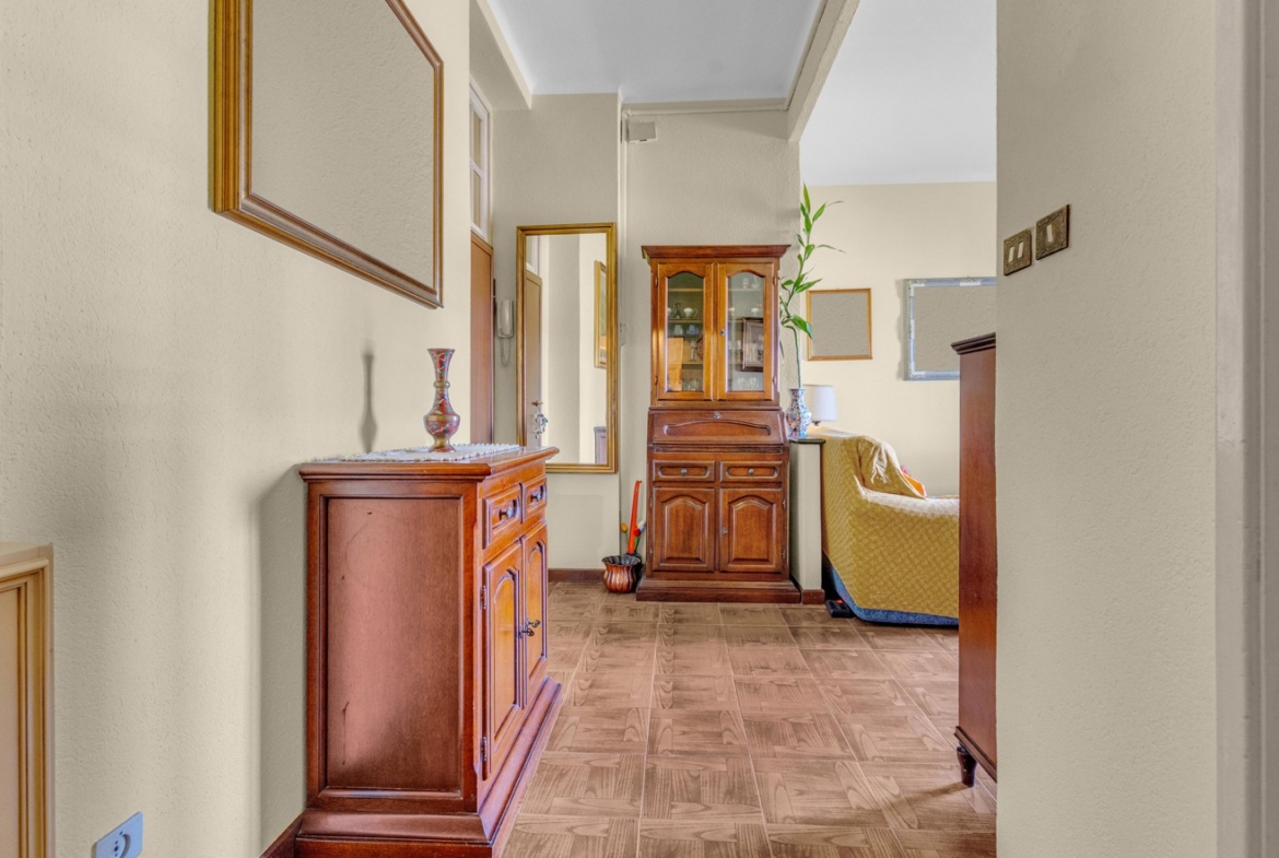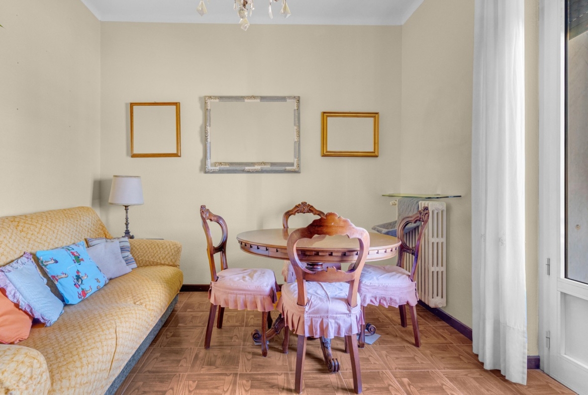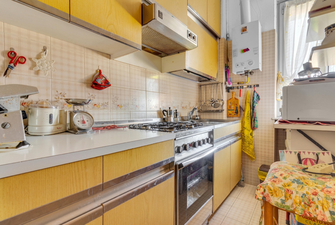 La cucina, attualmente separata, si presta a una reinterpretazione moderna e funzionale, con la possibilità di creare un ambiente su misura, contemporaneo e ricercato, magari con soluzioni open space o dettagli di design.