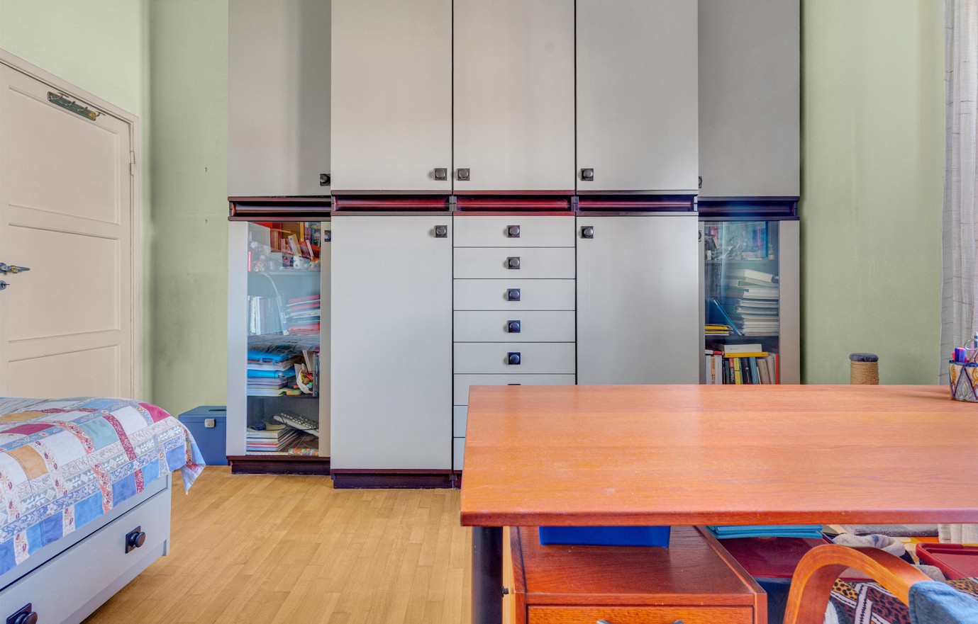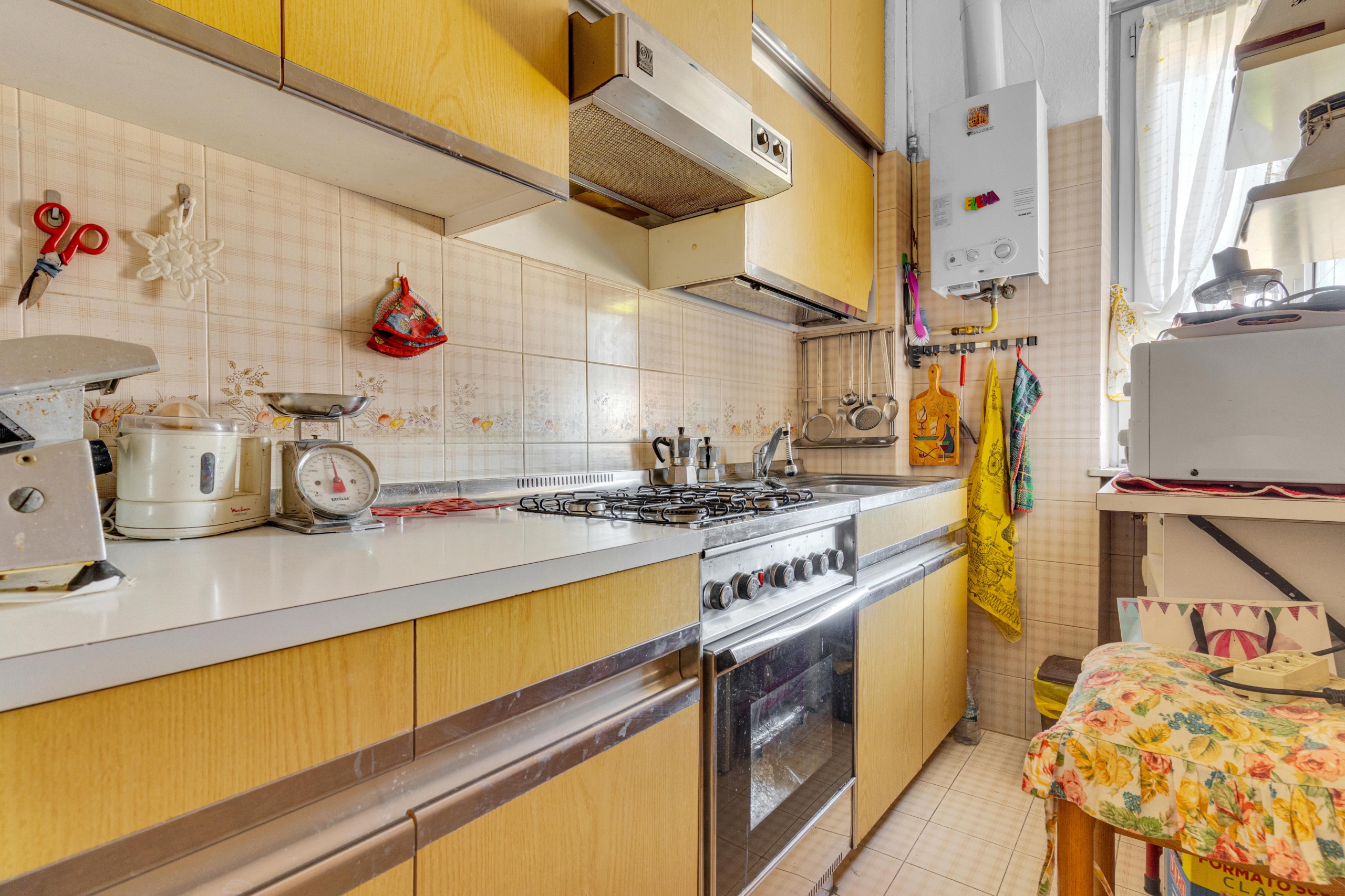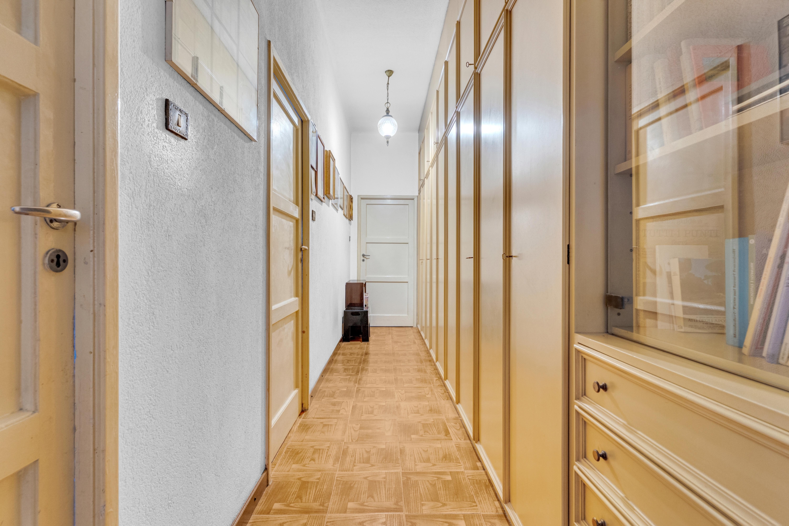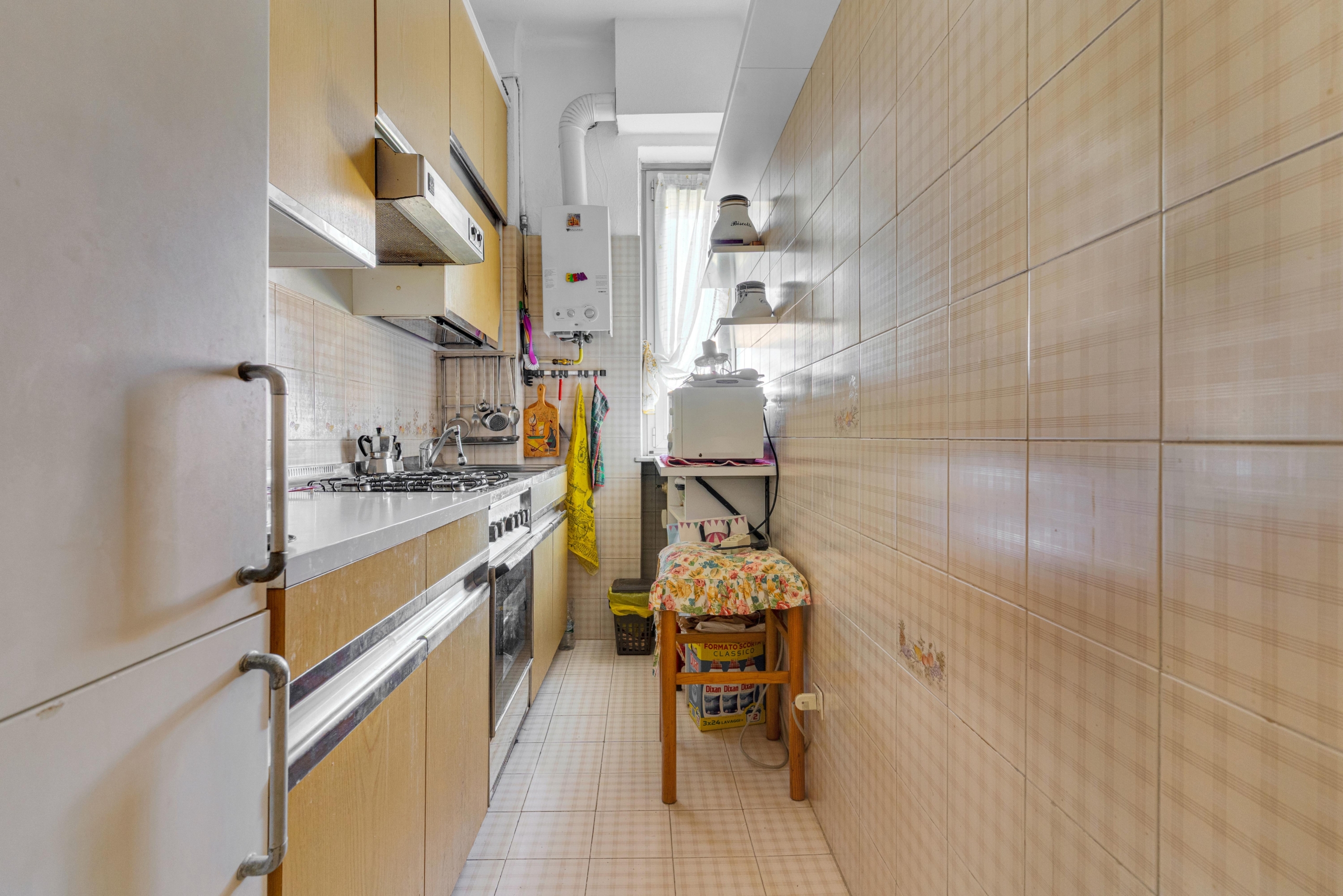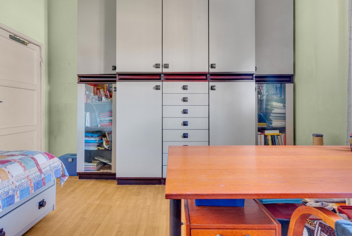 La cucina, attualmente separata, si presta a una reinterpretazione moderna e funzionale, con la possibilità di creare un ambiente su misura, contemporaneo e ricercato, magari con soluzioni open space o dettagli di design.