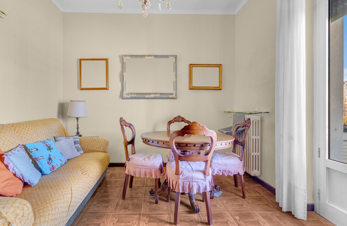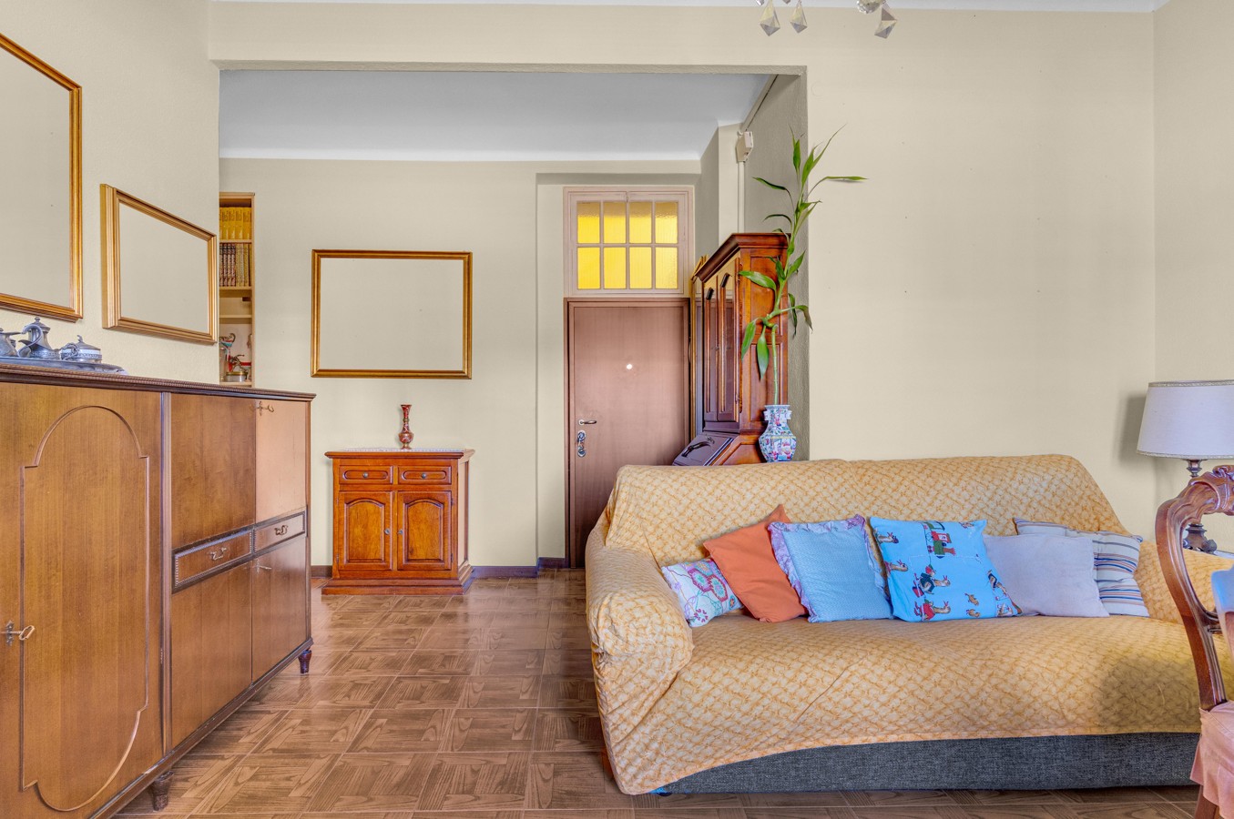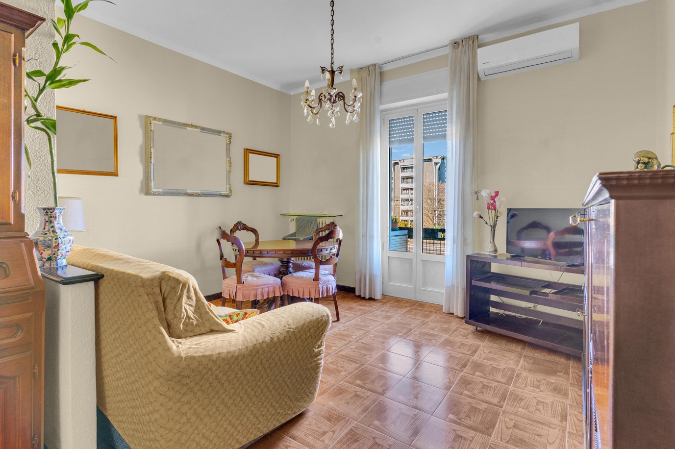 L’ingresso conduce a una zona living con accesso al primo balcone, perfetto per accogliere ospiti o vivere momenti di relax.